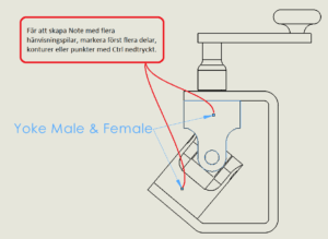 För att skapa flera hänvisande pilar från en anteckning (Note), håll ner Ctrl och markera flera saker i en ritnings-vy.