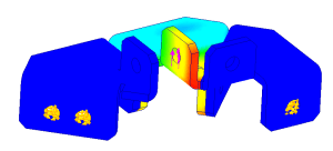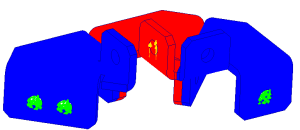 När vi löser modellen kommer meddelandet om ”Excessive displacement….” och efter att vi svarat ”No” i den dialogen får vi visat för oss de två delarna som sitter fast, den tredje är borta. Läs bloggen om Excessive Displacement där föklaras ”Excessive displacement…”.