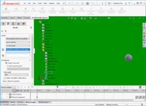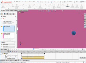 För att skjuta bollen är SOLIDWORKS Motion det självklara valet. Detta är ett addin som ingår i SOLIDWORKS Premium och som startas från addins-fliken. Själva simuleringen görs sen i Motion Study-fliken.