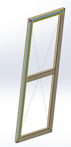 Då har vi en färdig modell att skicka till kunden. Här går det att lägga lite mer tid på att göra en snygg bild i Visualize för att kunna få det än snyggare om man vill det, men i detta fallet så var det tiden som man fick ut en fil den viktigaste så en snabb skärmbild för att kunna visa kunden hur man tänker. När det är klart så är det bara att göra en ritning på detta med kaplista och allt, detta på mindre än 5 minuter. Vill man göra en ändring så är det bara att flytta grundprofilerna så hänger allt med och du har en ny dörr på några sekunder.