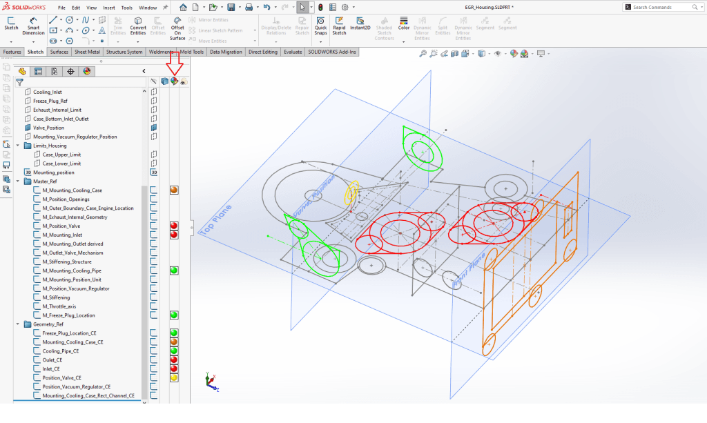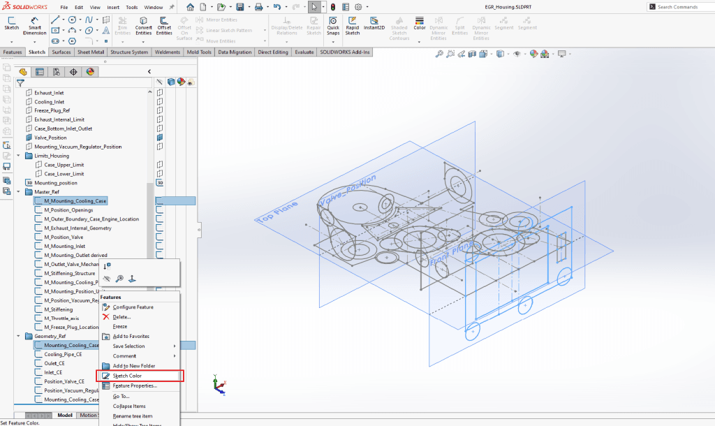 I vissa part-strukturer kan det lätt bli plottrigt allteftersom vi fyller på med referensskisser och konstruktionsgeometrier. I denna blogg tittar vi på Sketch Color.