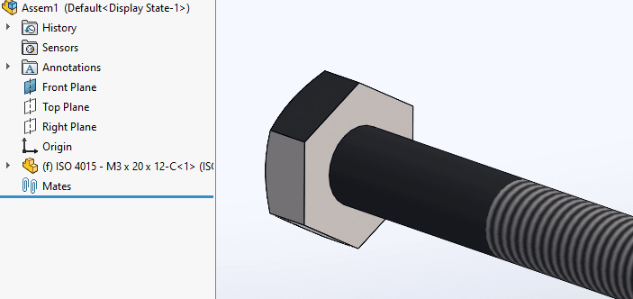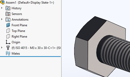 Nu har vi alla skruvar som parter. Dock om vi lägger dom i en sammanställning så har dom fortfarande sin toolbox icon.