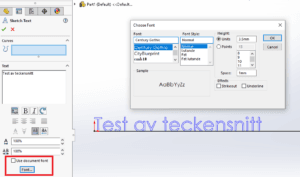 - Är det ett teckensnitt för måttsättning (Dimensions) i en Part eller Sammanställning som tex Arial Narrow duger det oftast att låta SOLIDWORKS välja ett nytt teckensnitt automatiskt eftersom det inte kommer synas på en ritning,