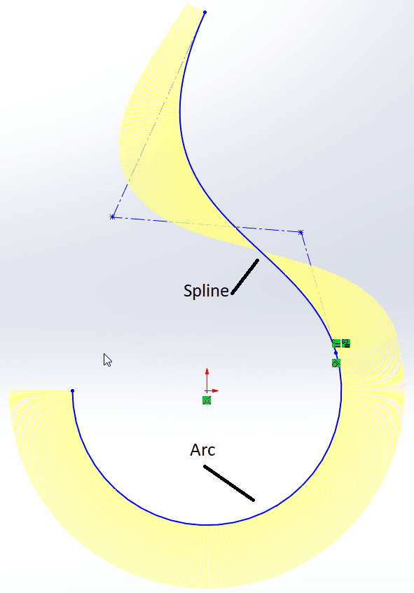 Till att börja med tänkte jag nämna en ny relation som vi kan använda i solidworks 2020, som heter ”Torsion Continuity”. Vilket i enkla ord hjälper oss som jobbar med ibland splines att få ett till verktyg för att få jämnare kurvor och övergångar. Bilderna nedan ser du en cirkelbåge och en spline som delar en punkt. Och i detta fall vill vi att det ska vara jämn övergång. Mer i detalj kan jag inte beskriva än denna mening – The result is a smooth continuity with equal curvature and equal rate of curvature at the shared end point between the spline and arc. http://help.solidworks.com/2020/english/solidworks/sldworks/t_applying_torsion_continuity_relations.htm