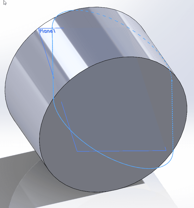 Samt om man ändrar kuben till att vara en cylinder istället och sketchen ligger efter i historieträdet. Så ändrar sig den skapta konturen efter cylinderns form.