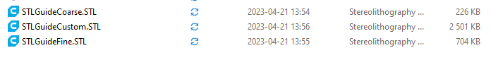 Här ser vi hur det ser ut i 3dskrivaren program innan utskrift, ordningen är från vänster: coarse, fine och custom.
